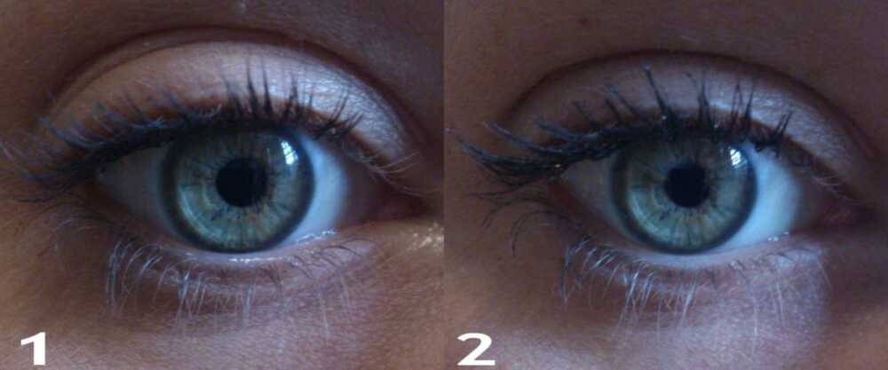Ez a kétfázisú szempillaspirál az egyik végén (1) található spirál kimondottan a dúsításért felel (waxot, sötét pigmenteket és dúsító részeket tartalmaz), míg a másik (2) egy fényes, lakk hatású fedőréteggel látja el a szempillákat (gél-alapú formula ami tovább vastagítja a pillákat).