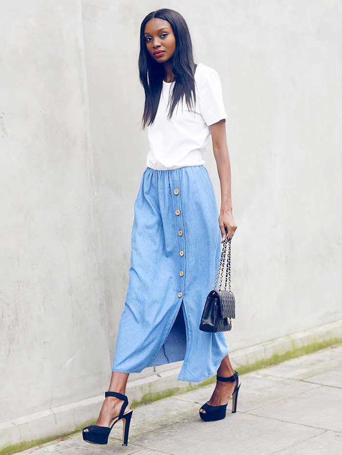 Emlékszem még gimnáziumi évek vége felé volt egy farmer maxi szoknyám amit valamilyen különös oknál fogva imádtam. Pedig mai fejjel visszagondolva nem volt túl szép, azzal a furcsa koptatással végig a láb vonalánál…Természetesen az idő és a trendek összefogtak ellene, így picit fájó szívvel de megváltam tőle. Nem mondom azt, hogy idén tavasszal büszkén hordanám, de most biztosan jól jönne, ugyanis az idei meleg hónapok egyik slágerdarabja lesz (ha lehet hinni az előrejelzéseknek), a farmer maxiszoknya.